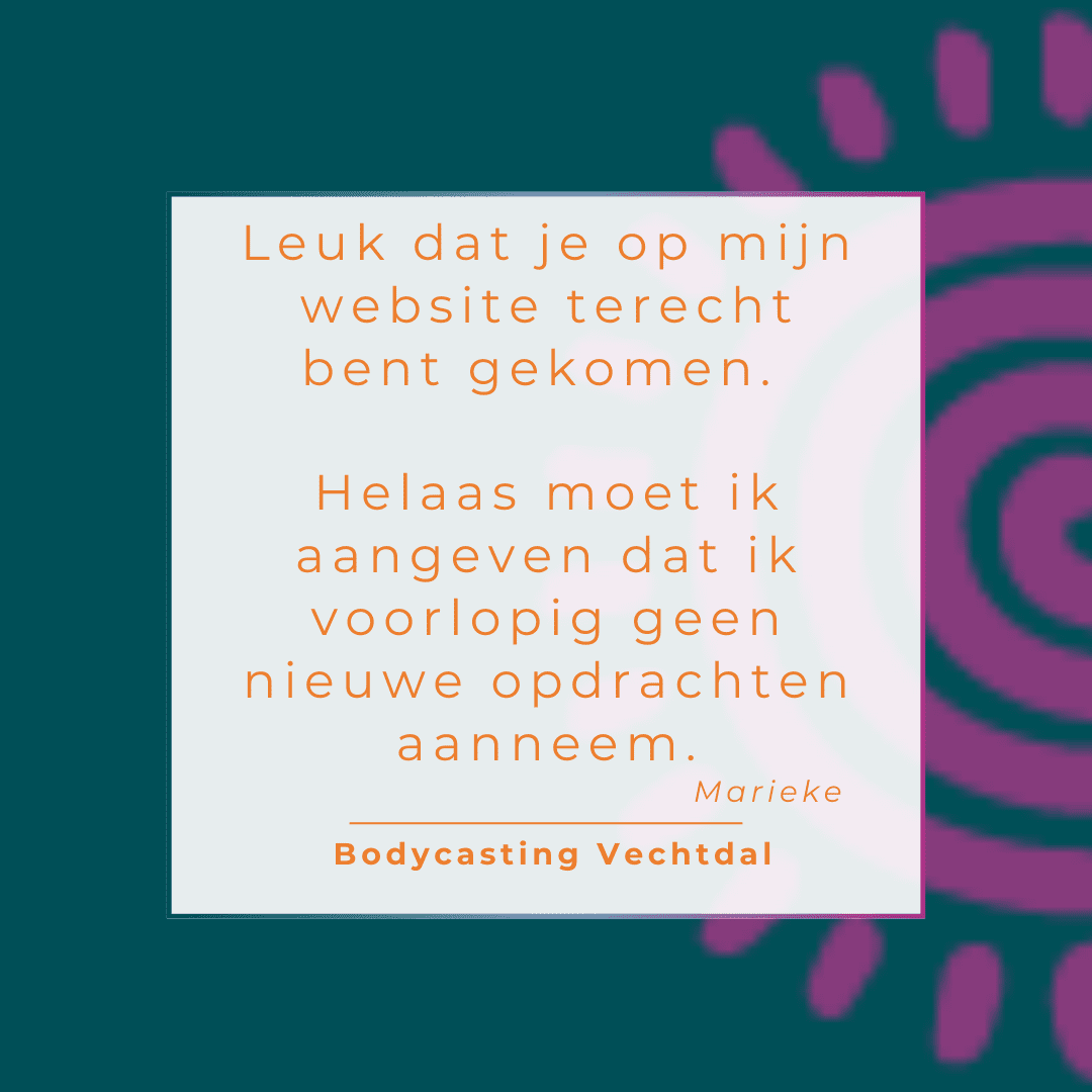 Neem vrijblijvend contact met mij op door een mail te sturen naar: marieke@bodycastingvechtdal.nl